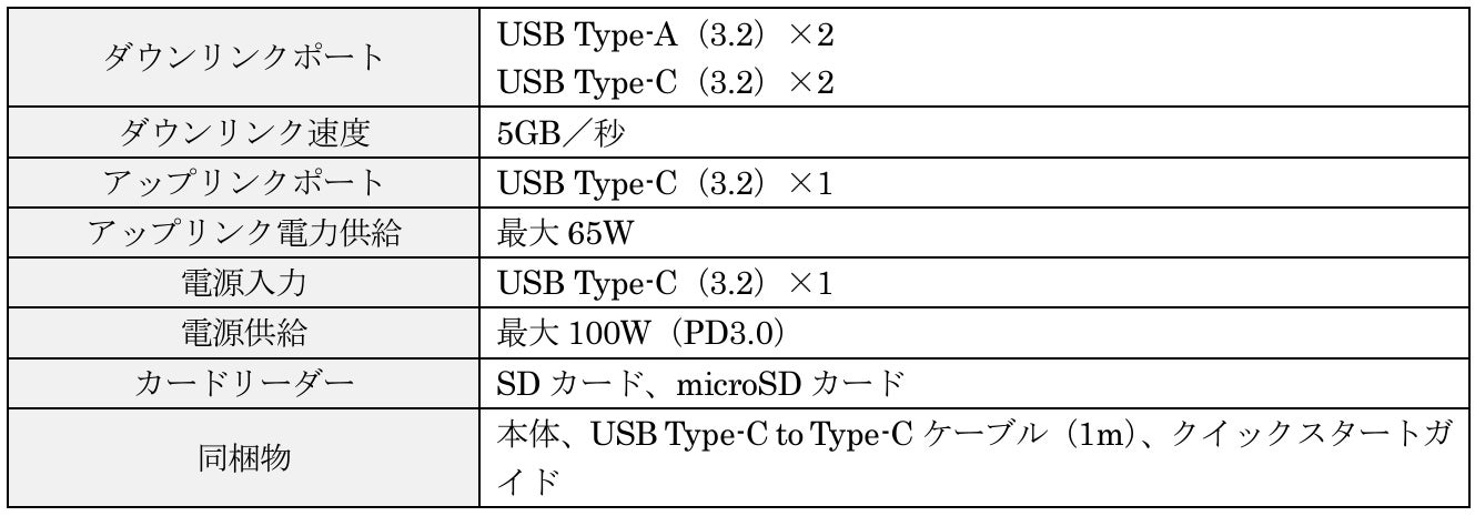 ・最大100Wの電源共有に対応しておりノートパソコンや多くのデバイスを充電可能