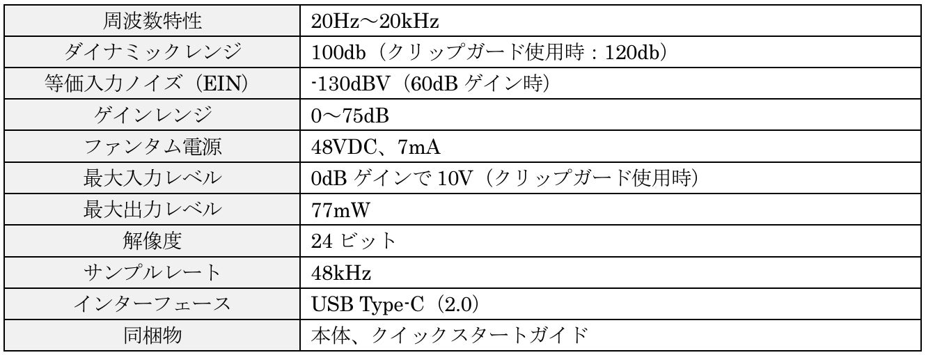 ・内蔵プリアンプは48Vファンタム電源を搭載、最大75dBのゲイン