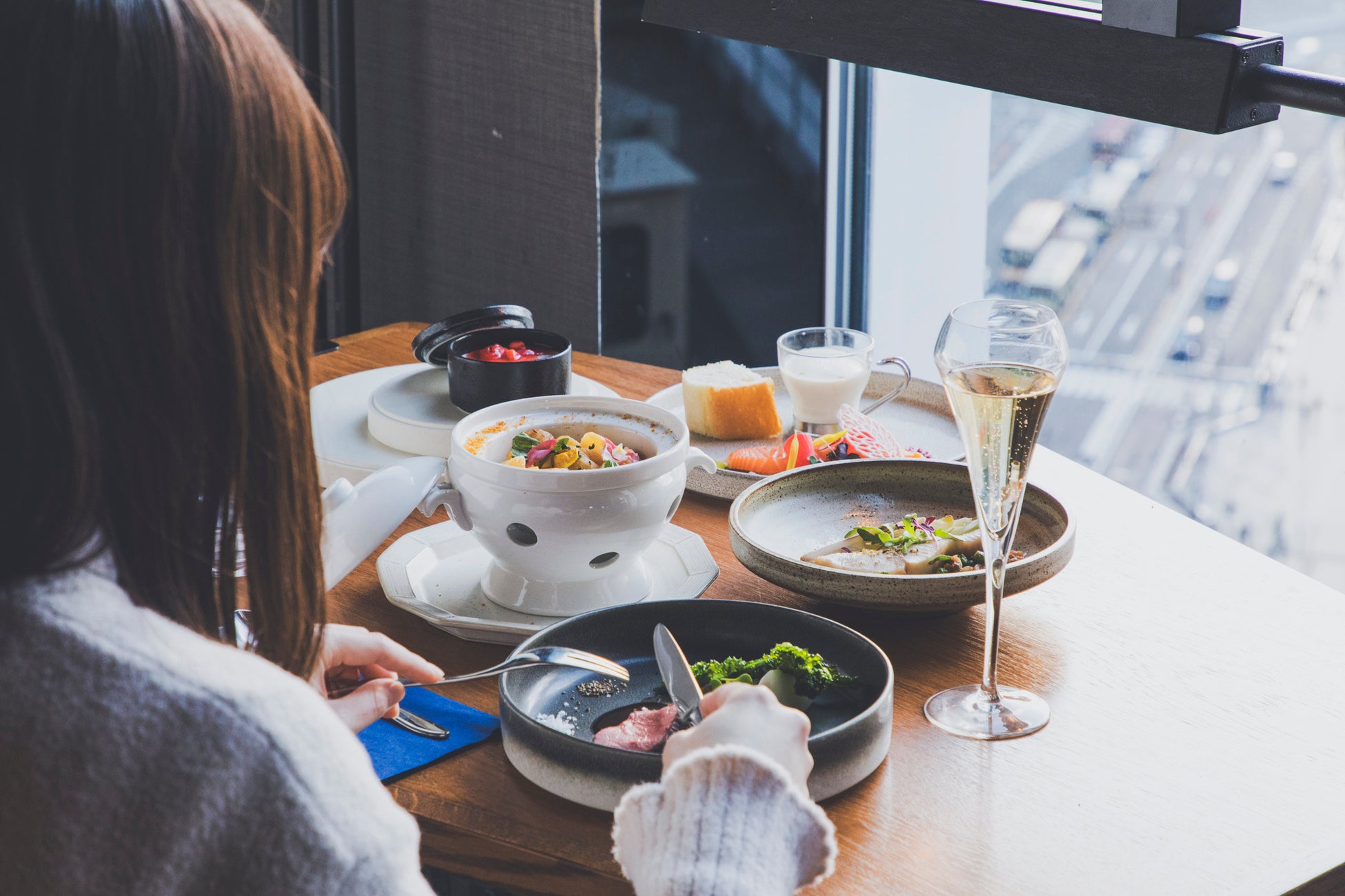 目の前に広がる地上100メートルの梅田の空で優雅にコスパよくアフタヌーンをお楽しみにください。