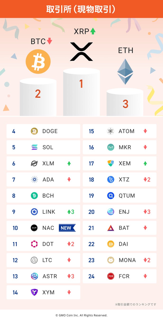 GMOコインの「販売所」および「取引所(現物取引)」における2024年12月の取引ランキングをご紹介します。
