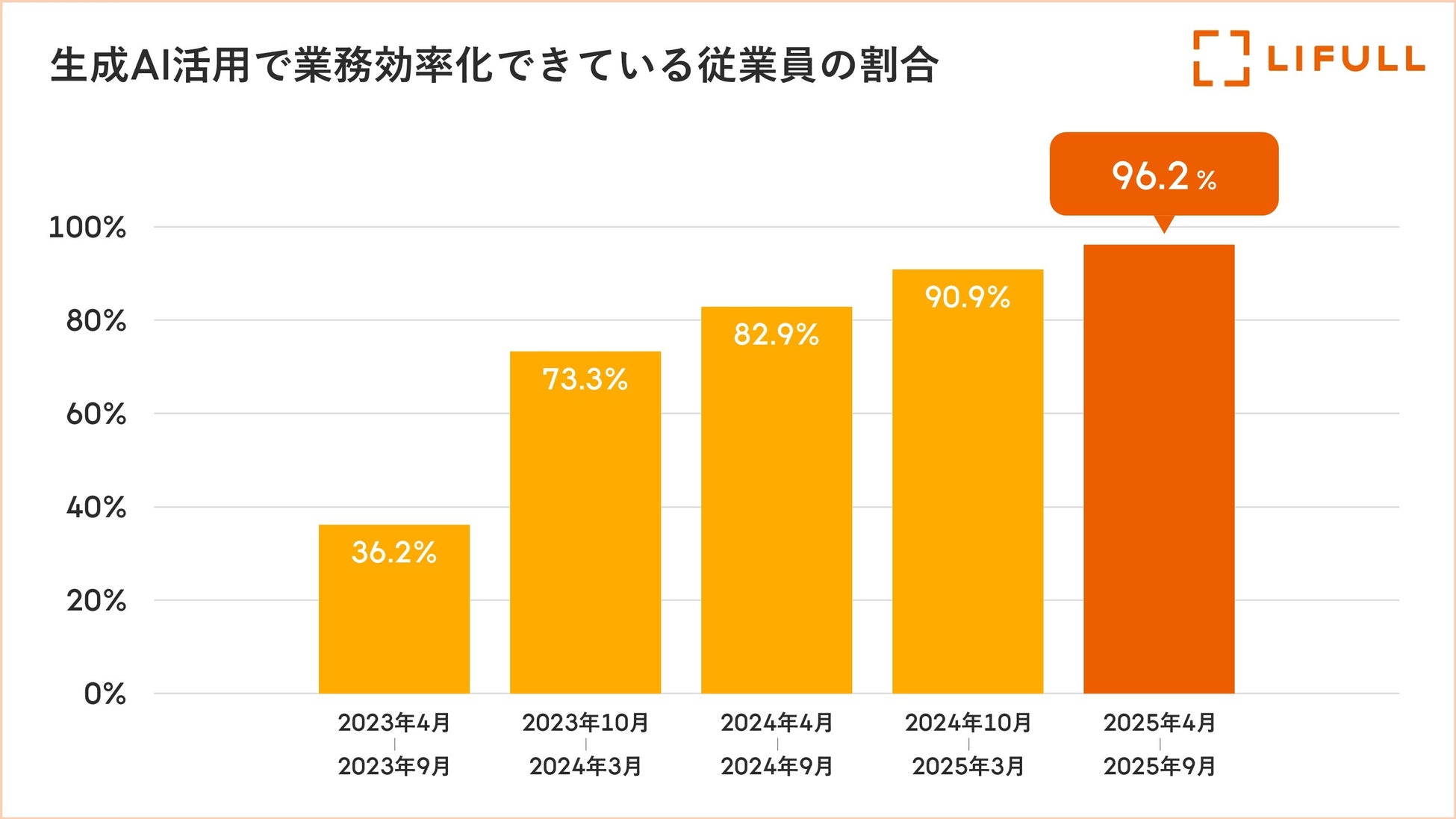 生成AI活用によって業務効率化できている従業員は96.2%、2年間で2.7倍に増加