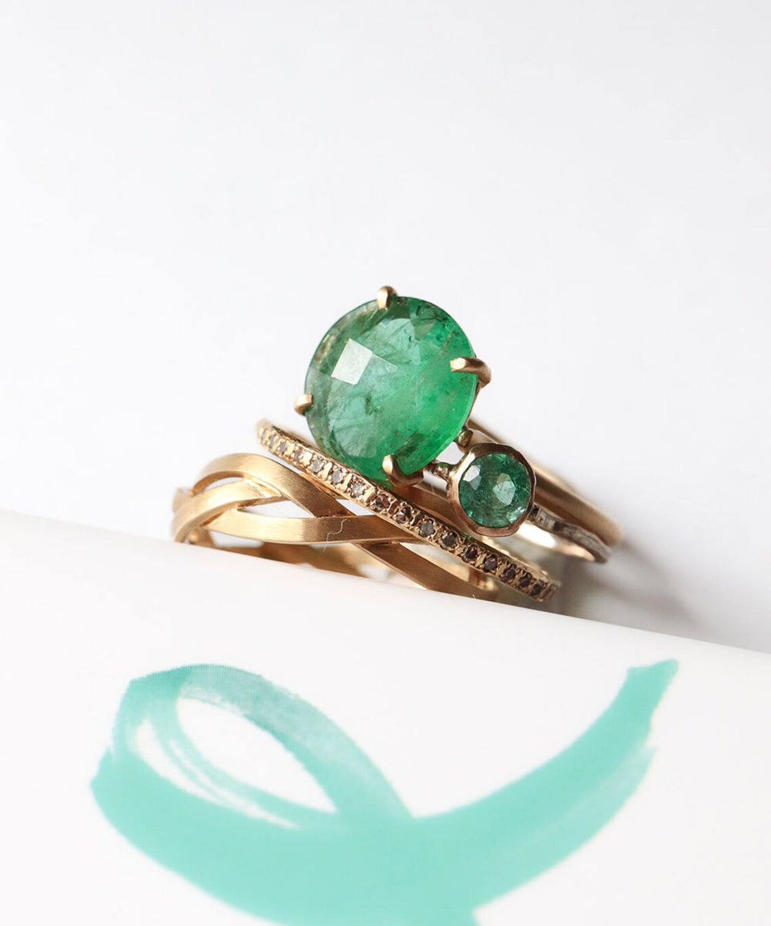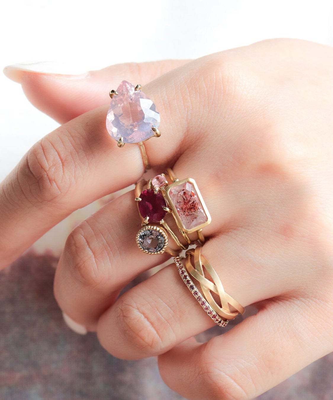 「自然の造形に勝るものはないと考えています。選んだ石の形をできる限り生かし、石との出会いを運命と思ってジュエリーに仕立てています。〈MONAKA jewellery〉を通じて色石の魅力を知り、心を動かされるような体験をお届けできれば嬉しいです。」 — デザイナー 寳神朝子