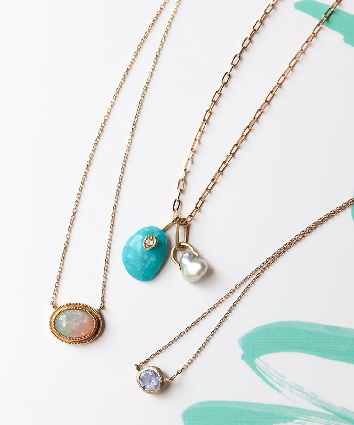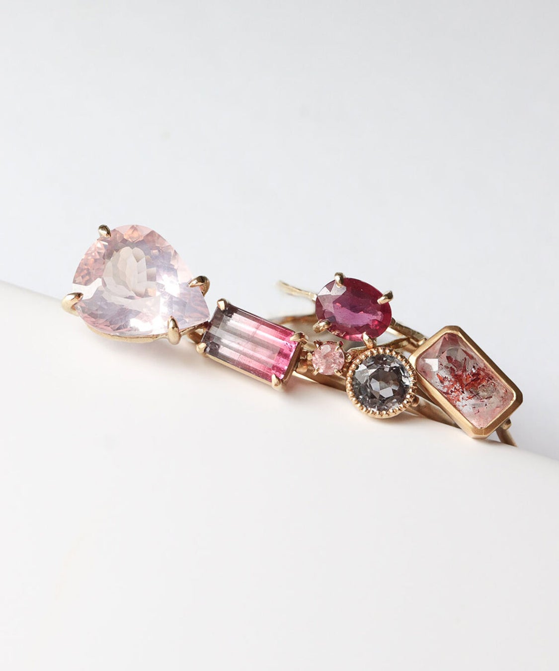 自然が生み出す造形美を尊重し、原石のアウトラインや歪な形をそのままデザインに取り入れるスタイルが特徴。石の持ち味を引き出す独自のアプローチは、一点物ならではの魅力を放ち、長く愛されるパーソナルジュエリーとして支持を集めています。