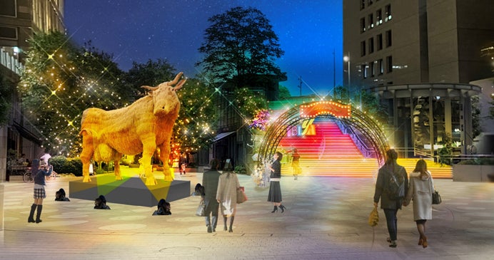 美術作家 松本勇馬氏による巨大なわらアート作品が東京ミッドタウン日比谷アトリウムとステップ広場に登場。