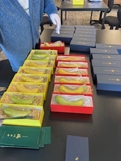 令和6年2月頃から土の入替、約80メートルの暗渠を手作りし、バナナの苗植えを行い、現在では167本のバナナの木が、大きいものでは全高7メートルに育っています。令和6年12月頃からはだんだんと実を結ぶようになり、今年6月から試験的に収穫を開始。8月からは出荷に向けて収穫を本格化させてきました。収穫後は、バナナの甘さを引き出すために、バナナ自身から放出されるエチレンガスを用いて熟作業「追熟」を行うなどの作業を行い、10月29日に市内スーパーでついに販売が開始されました。収穫されたバナナは、「福バナナ」という名称で、農薬や化学肥料を一切使用していないため皮ごと食べることもでき、中の果実は甘くふくよかな香りがするのが特徴です。初回は約30本が販売され3日間で完売。今後も20本から30本単位で市内スーパーにて販売される予定です。