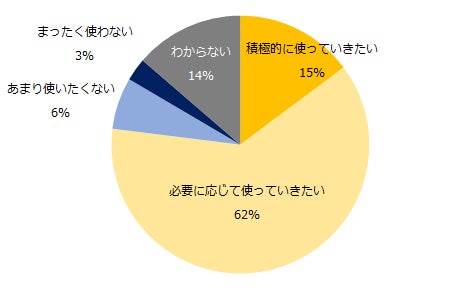 また、今後の生成AIの利用については、77%の方が「使っていきたい」(積極的に使っていきたい:15%、必要に応じて使っていきたい:62%)と回答しました。