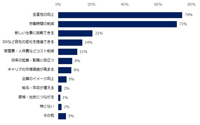 生成AIを使うメリットを伺うと、上位は「生産性の向上」(74%)、「労働時間の削減」(71%)でした。一方、生成AI使用上の懸念点として多く挙げられたのは「誤情報の発信」(60%)、「真偽の確認に手間がかかる」(53%)、「機密情報の漏洩」(49%)、「著作権・商標等の侵害」(47%)でした。実際に生成AIを使ってみた感想や成果のエピソードなども紹介します。
