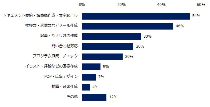 【図4】生成AIを業務で「使用している」「使用を検討している」と回答した方に伺います。生成AIを、どの用途で使用(または検討)していますか?(複数回答可)