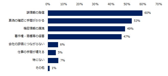 【図7】 生成AIを業務で「使用している」「使用を検討している」と回答した方に伺います。生成AIを使う上での、懸念点は何ですか?(複数回答可)