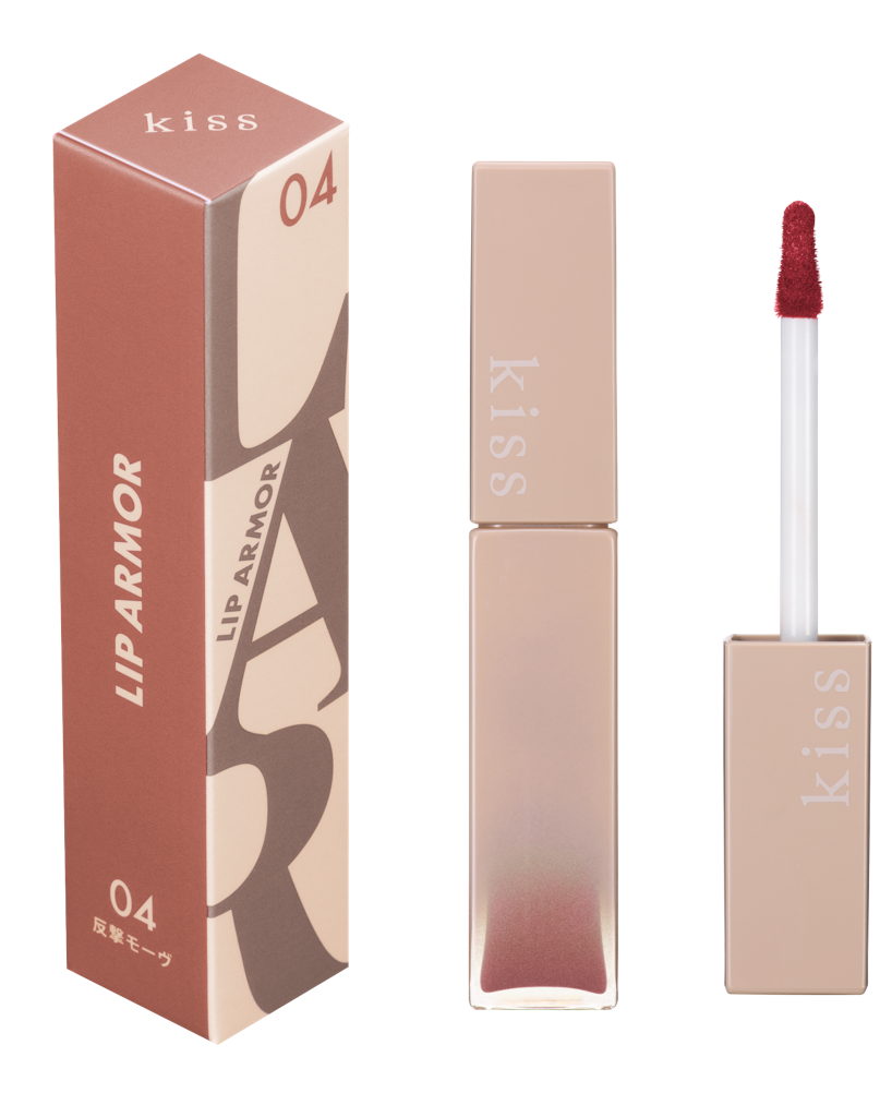世界初※1の成分アプローチで“ツヤ×うるおい×落ちにくい” 仕上がりを実現した「キス リップアーマー」。塗って約5分待つと唇に色が密着し、「透明ジェル膜」が唇をコート。
