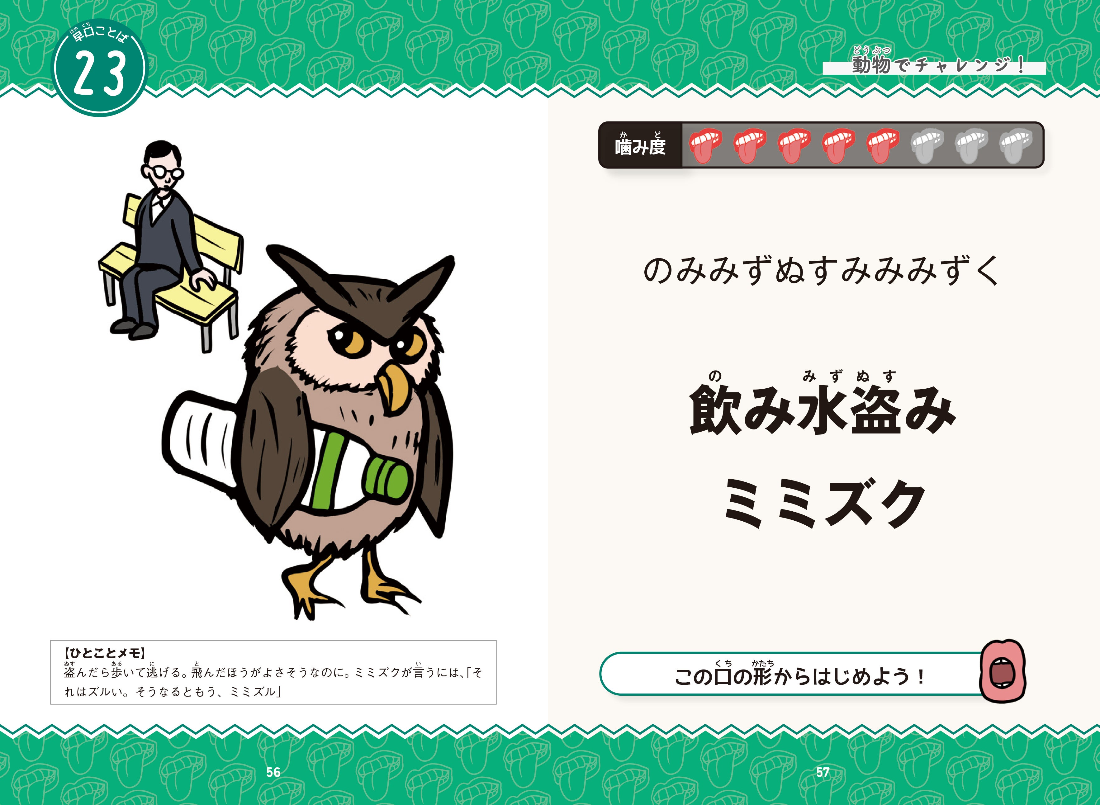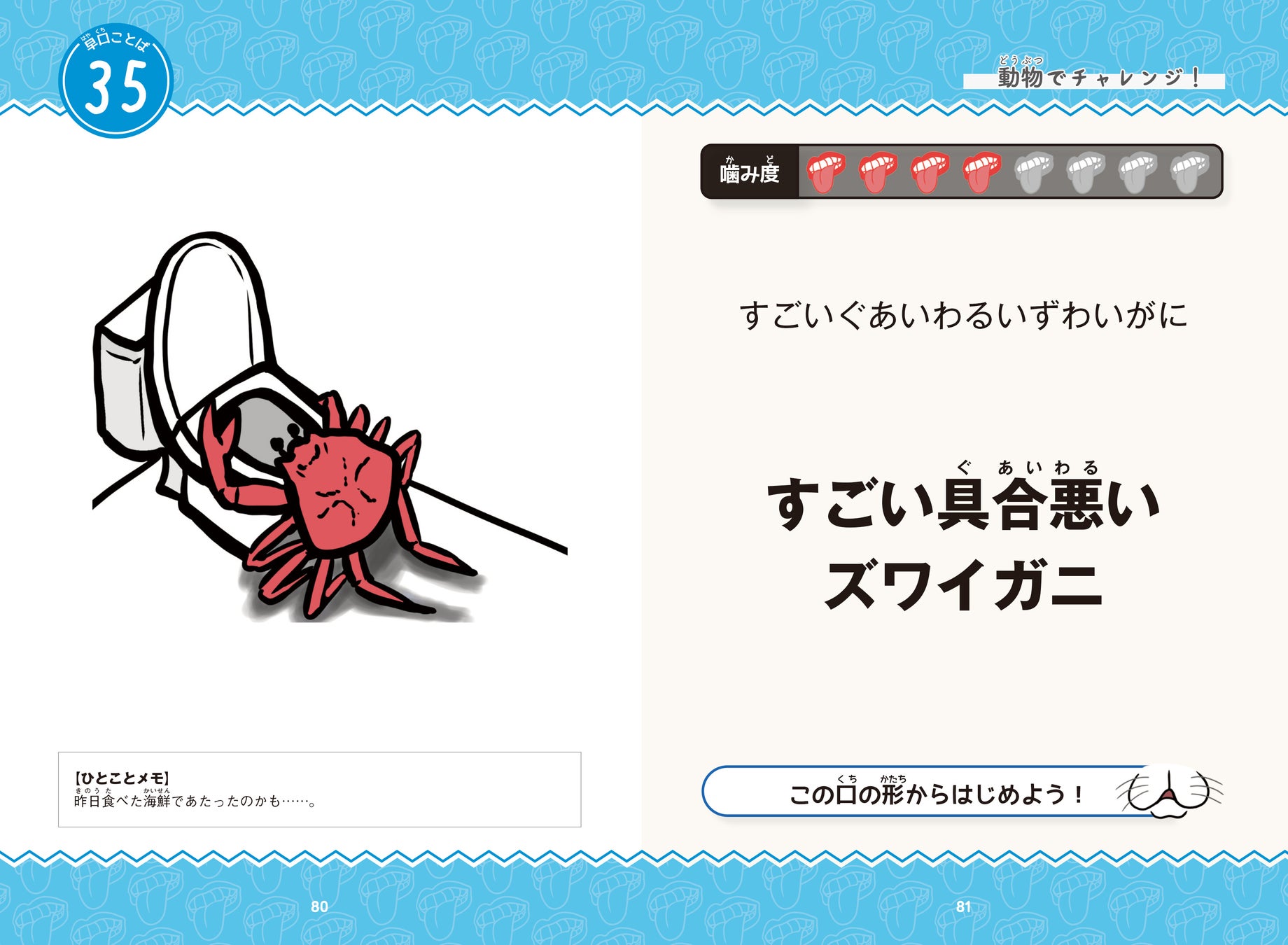 ページをめくるたびに、つい笑ってしまう、すぐに噛んじゃう、面白くて超ムズイ早口ことばを71作収録しています。