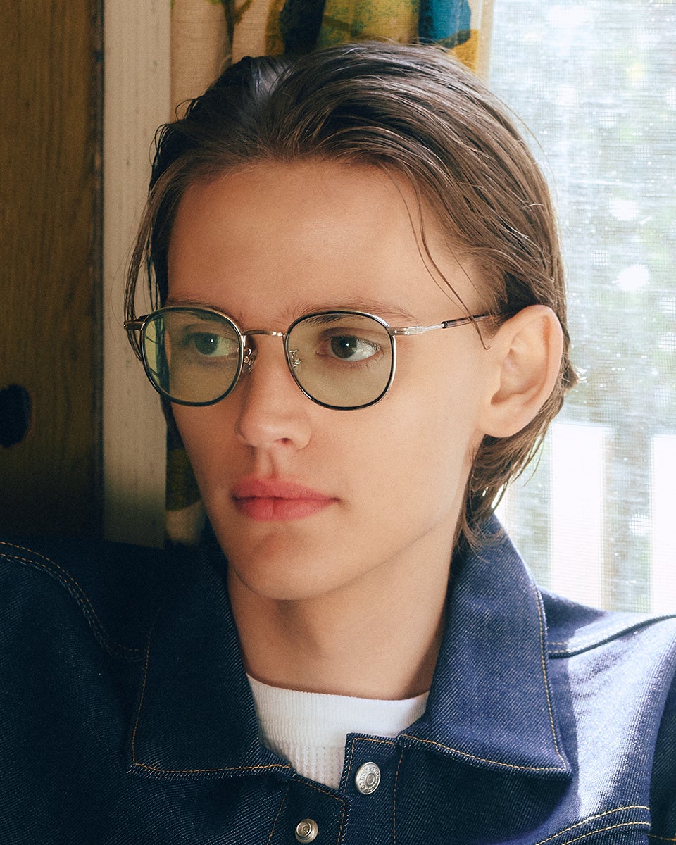 レンズ枠は小さめながら、かけ幅は通常サイズでバランスをとりました。細身でファッションにさりげないニュアンスをプラスしてくれます。