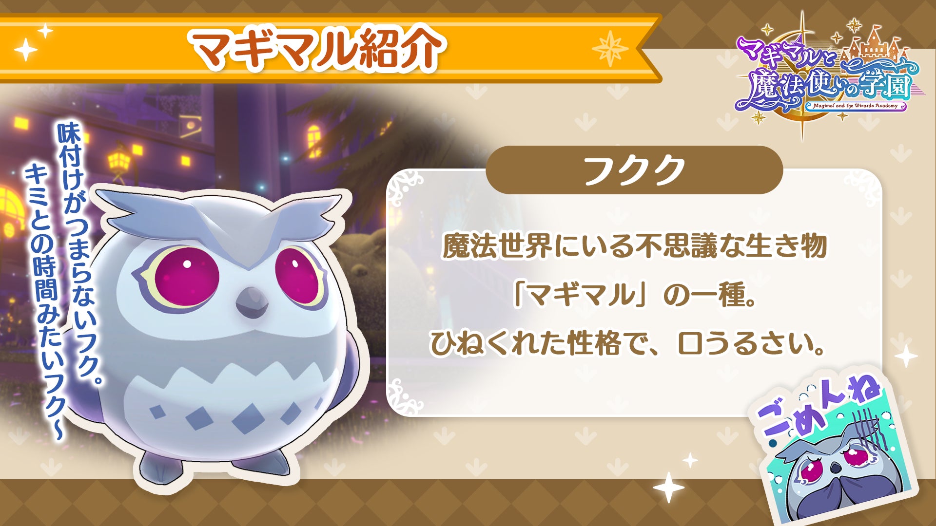 マギマルは、魔法世界に住む不思議な生き物です。マギマルにエサをあげると「マテリアル」と呼ばれるエネルギーの結晶を生み出すことがあります。マギマルをお世話しながらマテリアルを集めて、交換所で素敵なアイテムを入手してください。