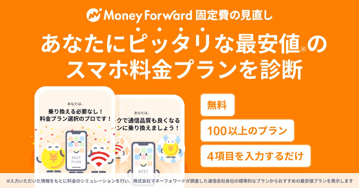 株式会社マネーフォワードは、『固定費の見直し』サービスにおいて、通信料金改善のための診断ができる「スマホ料金の見直し診断」(以下「本機能」)を開始しました。これによりユーザーは、100以上の多くの料金プランの中から、自分に合ったプランの検討と選択ができるようになります。