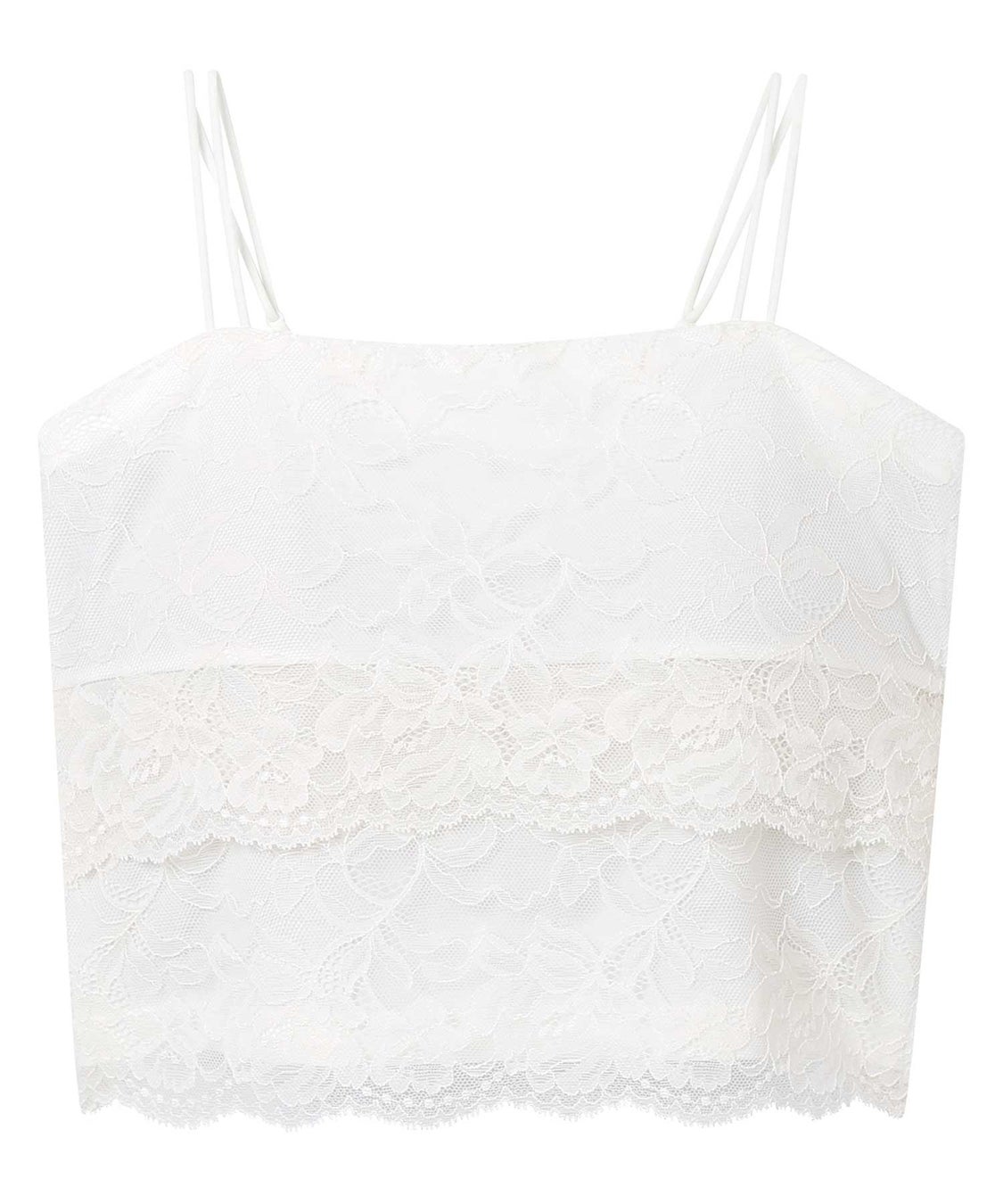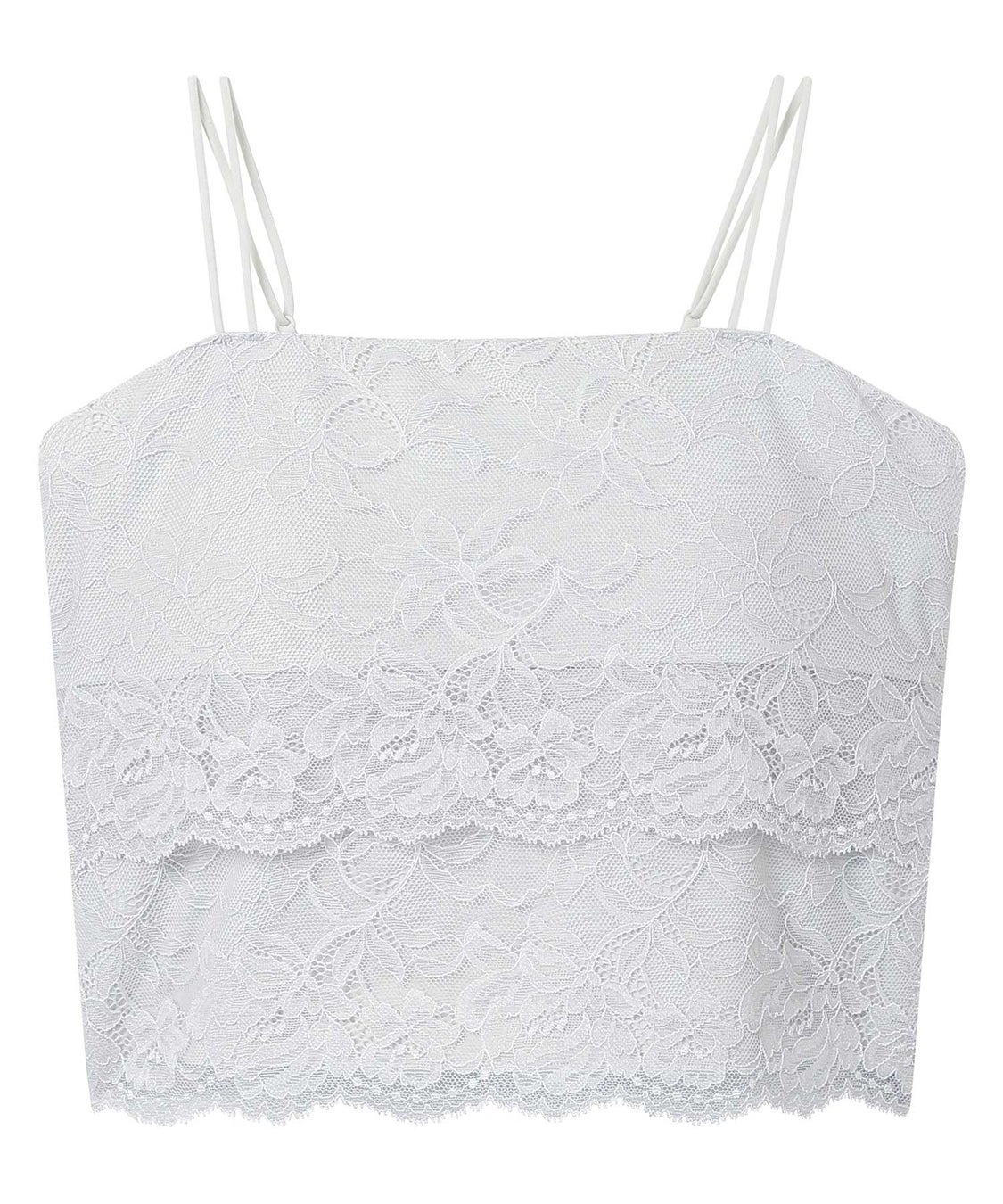 上品さとかわいさ、その両方を自分らしく楽しむ女性のためのファッションブランド「MERCURYDUO」とのコラボレーション。フロントに繊細なレースが映える、ティアードデザインのブラトップです。