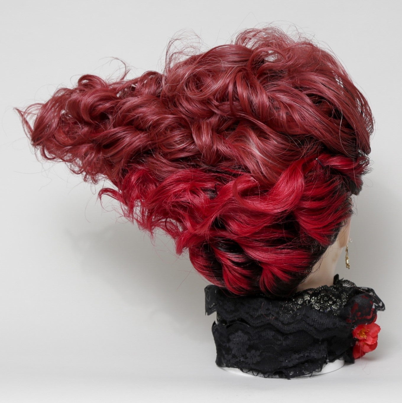 春に向かってほころぶ満開の梅の花をテーマにしました。左から右にかけて、ねじったウェーブを交差させて梅の花を表現。ウィッグの根元から毛先にかけてのグラデーション、生え際の立ち上がりと自然さにこだわりました。