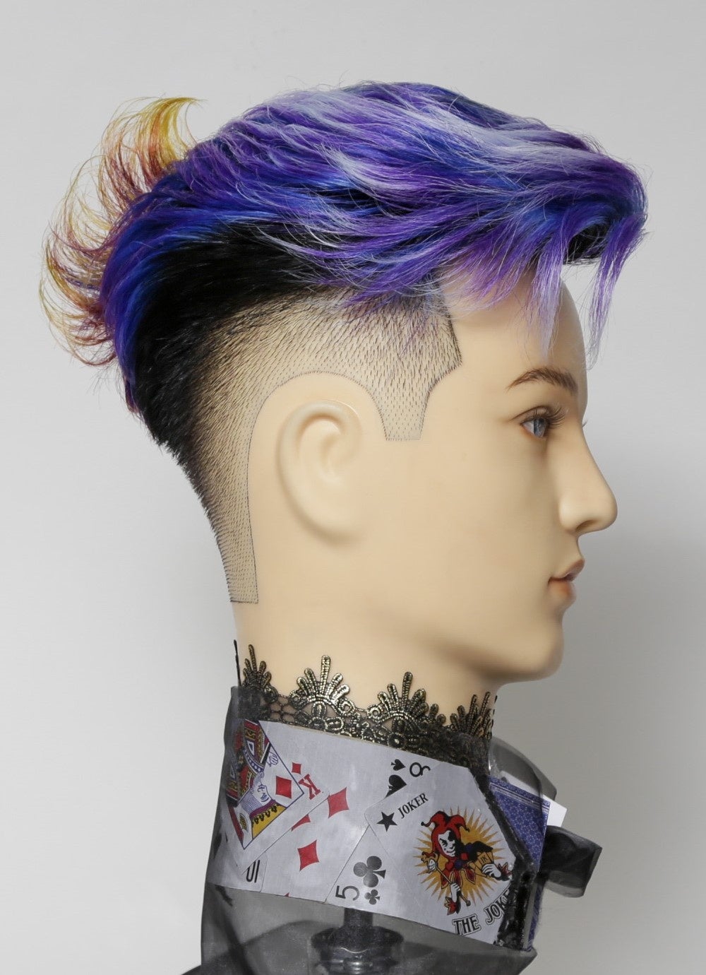 側面と後頭部の刈り上げにこだわった、男性らしいフェードスタイルに仕上げました。全体が繋がるような毛流れと色合いは、オーストラリア南部の海に生息している「シードラゴン」をイメージしています。