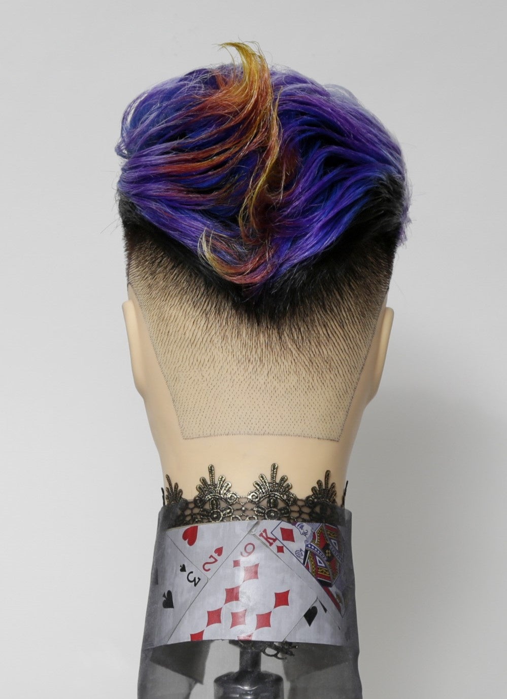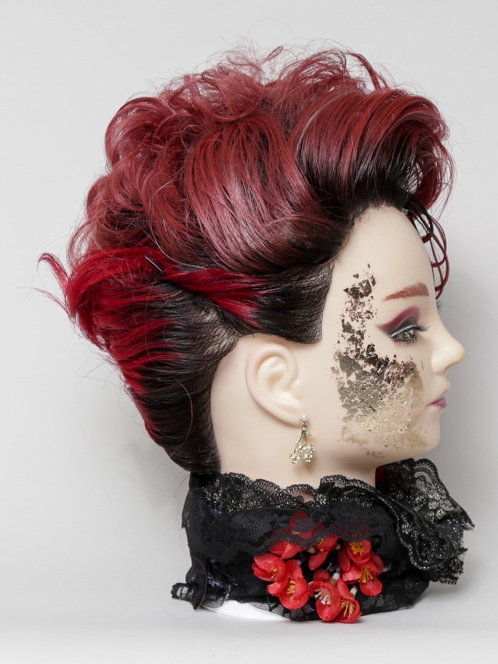 フリースタイル部門では、出場者が指示をして作製したウィッグを、カットウィッグ(マネキン)に取り付け、制限時間1時間でカットやスタイリングを行います。それぞれが予め設定したテーマに沿って、毛材の長さや量、色の組み合わせなど全て自由なスタイルで競いました。今年はメンズ・レディスともに例年と比べ非常にレベルの高い大会となり、作品は「ウィッグではできない」というイメージのあるアップスタイル、毛の流れ・ボリュームを左右上方向に流した動きのある作品が揃いました。