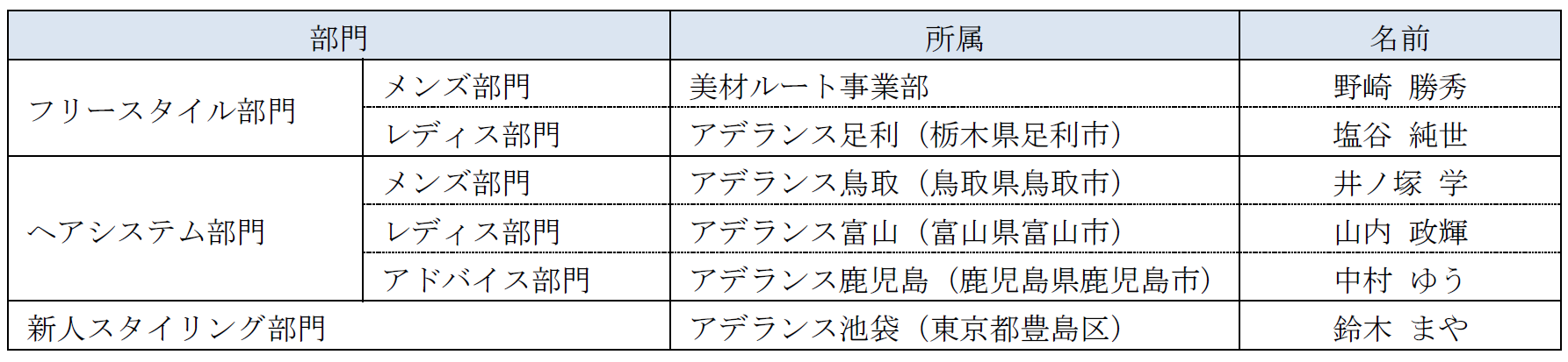 <「第54期 アデランス全国技術競技大会」優勝者一覧>