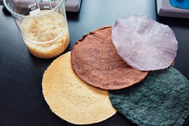 ・合成由来のPUやPVCの代替品として、環境配慮型バイオベースの結合剤(例:糖やタンパク質など)を利用し、新しいシート状のレザー素材を生み出す。
