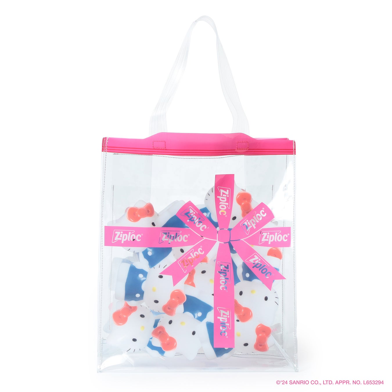 サンリオキャラクターズを『Ziploc®リボン』の中に詰め込み、PVCトートバックに落とし込んだアイテム。今年で50周年を迎えたハローキティを中心に、サンリオの10キャラクターとたくさんのハローキティが集まったデザイン2種類をご用意しています。前の姿はもちろん、可愛い後ろ姿にもご注目ください。