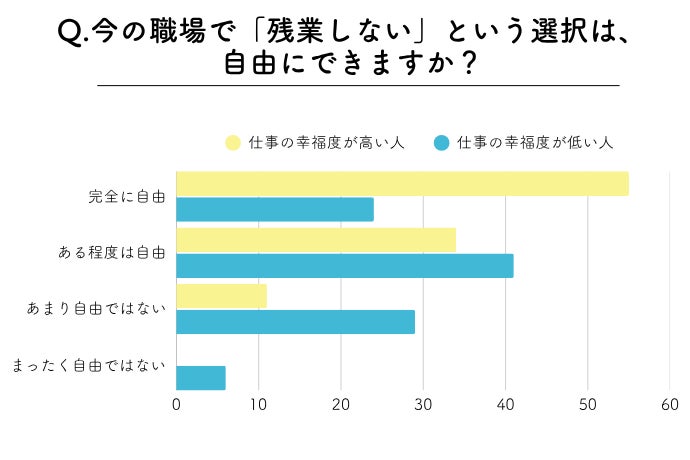 ● カギは「残業しない自由」。幸福な人の55%が「残業は完全に自由」