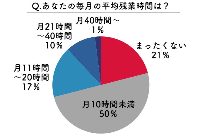 ● 7割が「残業月10時間未満」。現状のWLBは良好な傾向