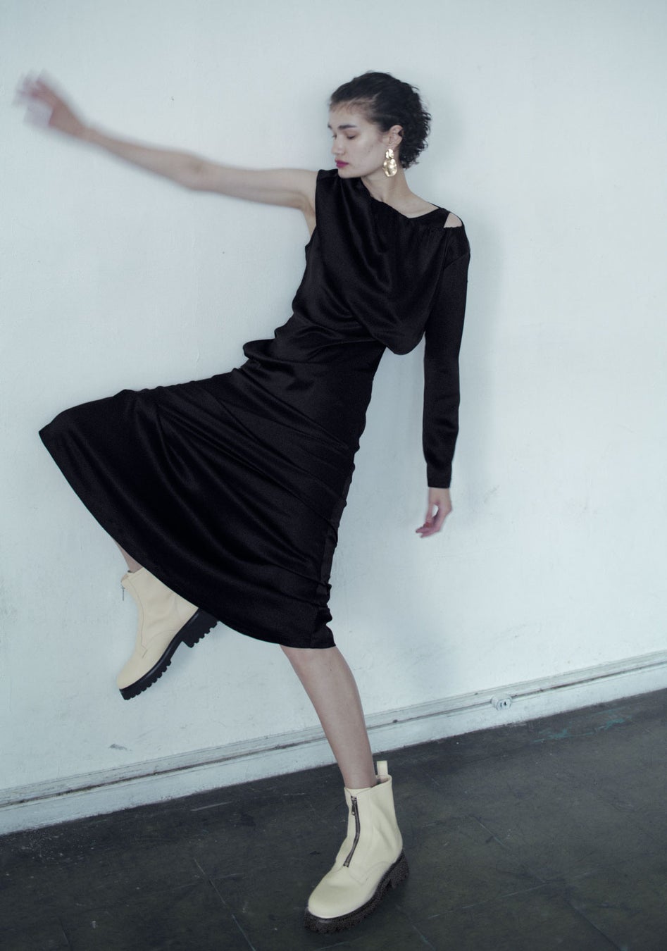 絶妙な丈感にスッキリとした美フォルムが、都会的な印象のハイカットチェルシーブーツ。