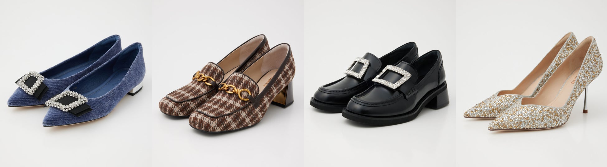 熊本鶴屋店では、ツイードやチェック柄のデザインシューズや、トレンドのバックルデザイン、ブランド定番のストーンを散りばめた華やかパンプスなど、初秋のファッションを足元から取り入れたくなるようなバリエーション豊かな新作アイテムを展開いたします。