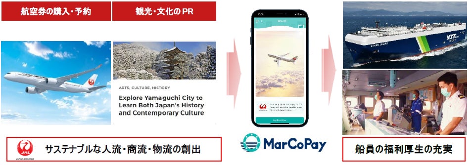 日本航空株式会社(本社:東京都品川区、代表取締役社長:赤坂祐二、以下JAL)と日本郵船株式会社(本社:東京都千代田区、代表取締役社長:長澤仁志、以下、「日本郵船」)のグループ会社で船員向け電子通貨プラットフォーム事業「MarCoPay(マルコペイ)」を運営するMarCoPay Inc.(本社:フィリピン・マニラ 代表取締役社長:藤岡敏晃、以下「マルコペイ社」)は業務提携契約を締結し、「MarCoPay」のモバイルアプリ上で、フィリピン人船員とその家族の福利厚生の充実と、新たな訪日需要の創出による地域活性化への貢献を目的としたサービスを12月23日より開始します。