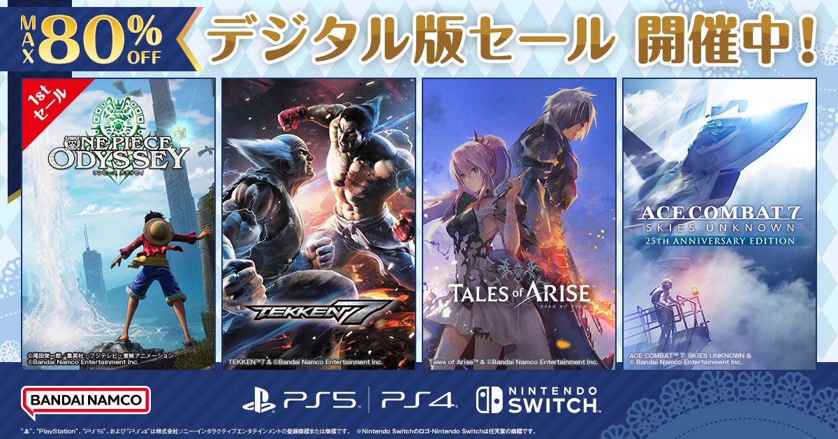 バンダイナムコエンターテインメント『デジタル版セール』開催中!シリーズ最新作の「ONE PIECE ODYSSEY」や「Tales of ARISE」などDL版ゲームが最大80%OFF!