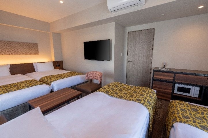 また、客室には全室に電子レンジ・冷凍庫を導入。さらにツインルーム数を増加し、2 名で利用されるお客様によりゆったりお寛ぎいただける客室となりました。