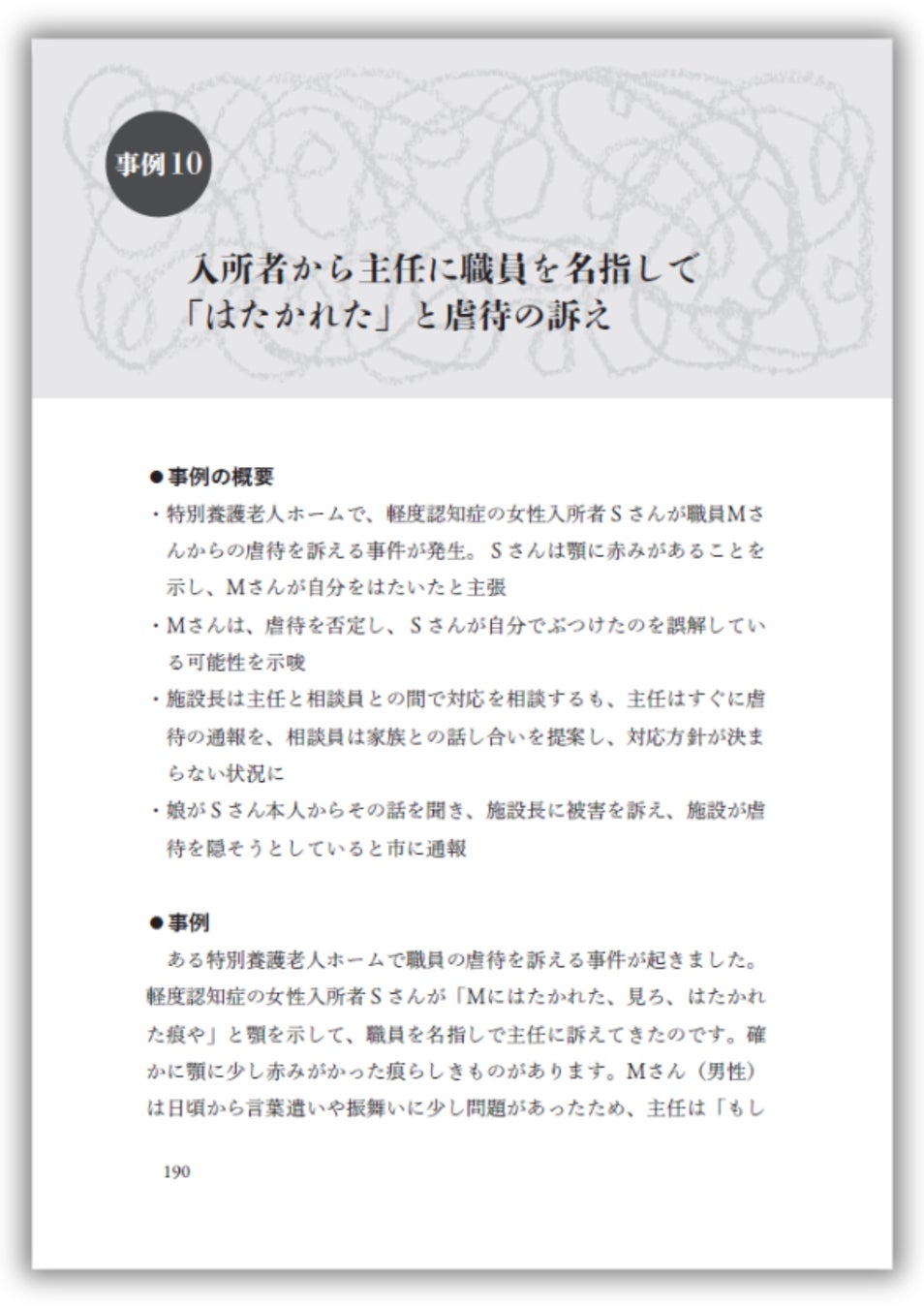 事例10 入所者から主任に職員を名指しで「はたかれた」と虐待の訴え