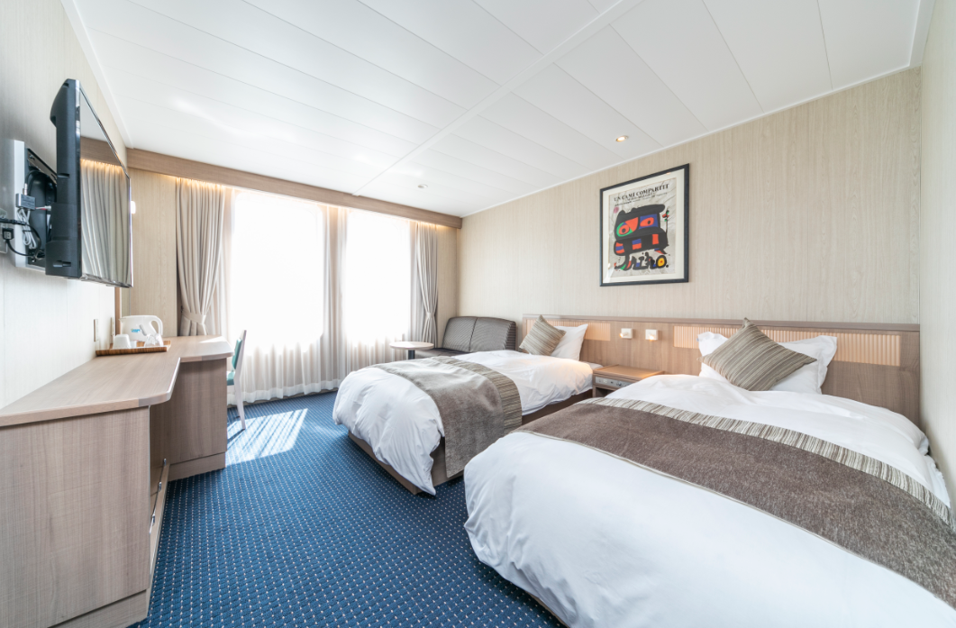 また、全船スイート個室にはバストイレがついており、ご安心してお休みいただけます。