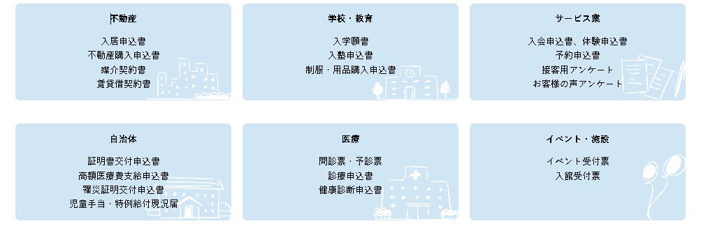 データ抽出パッケージとして、「請求書」「領収書・レシート」「名刺」「運転免許証」「健康保険証」「決算書」「源泉徴収書」「健康診断書」をリリースしており、今後もさまざまな用途のものをリリース予定です。