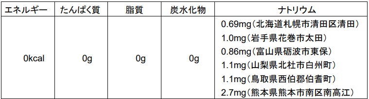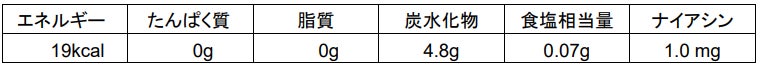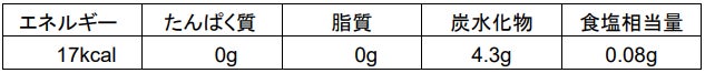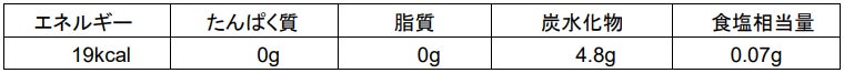 ・原材料名:ナチュラルミネラルウォーター、糖類(砂糖(国内製造)、果糖)、塩化Na/酸味料、香料、塩化K、乳酸Ca、酸化防止剤(ビタミンC)