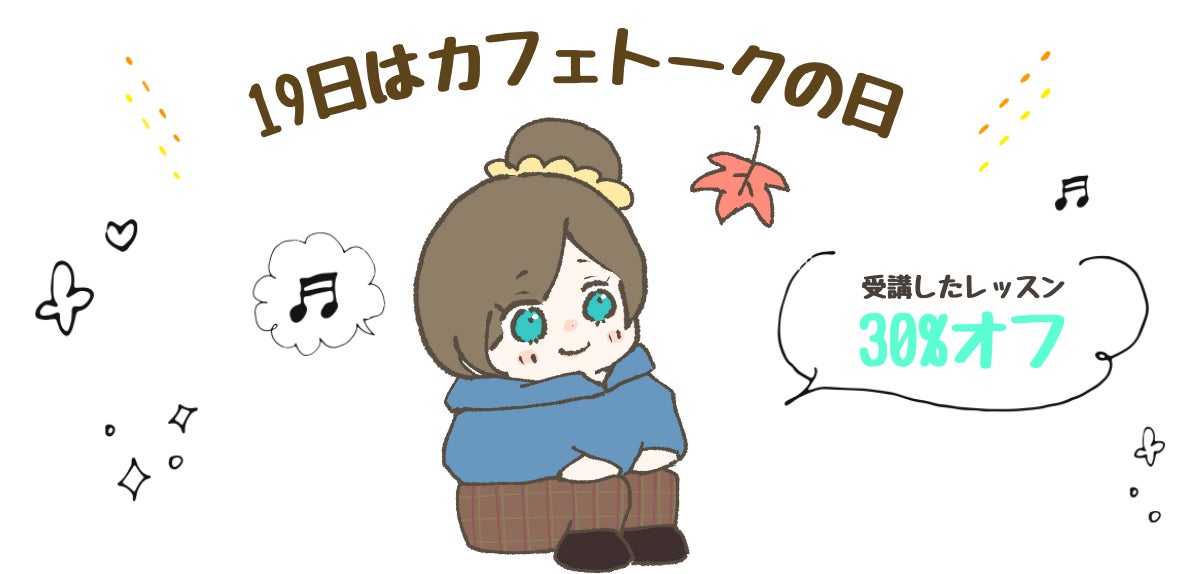「カフェトークの日」とは、日本最大級オンライン習い事サイト「カフェトーク」が毎月19日に実施している30%ポイントバックキャンペーンです。