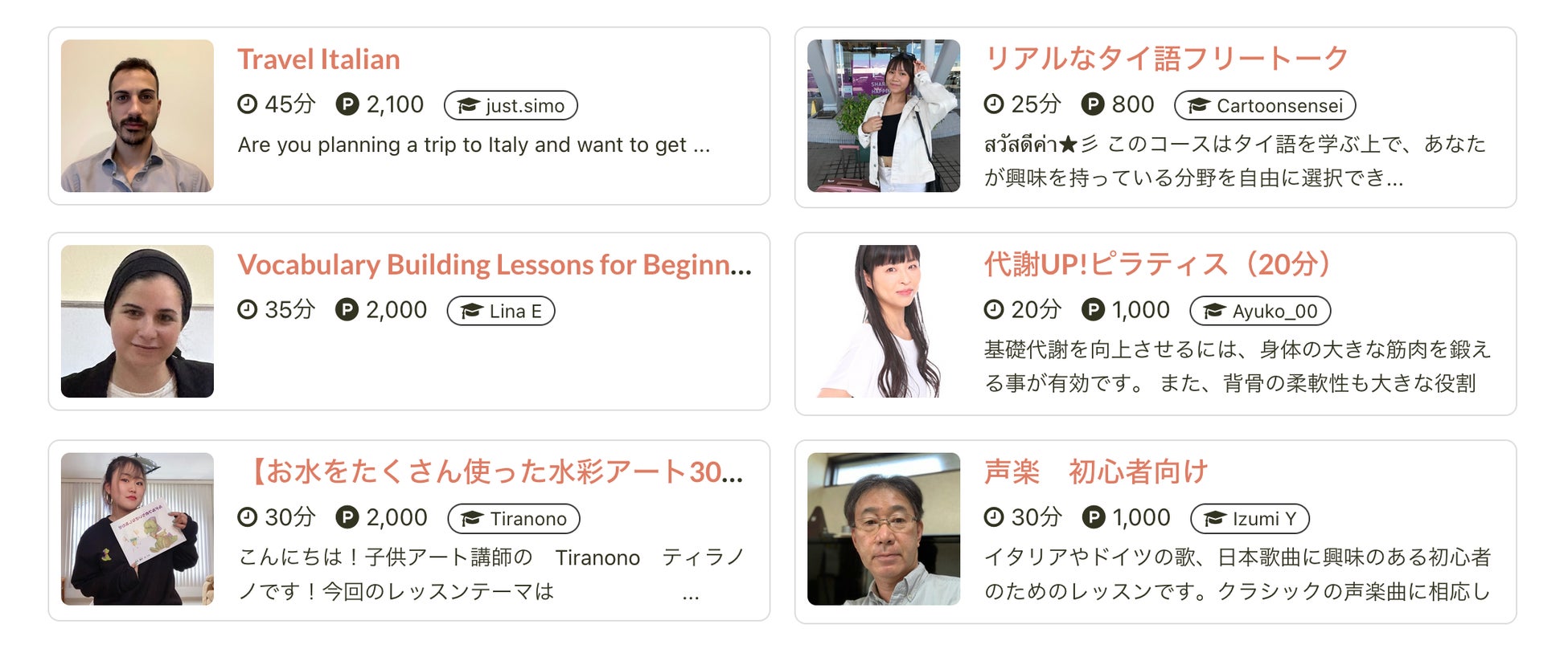 カフェトークのオンラインレッスン一覧:https://cafetalk.com/lessons/?lang=ja