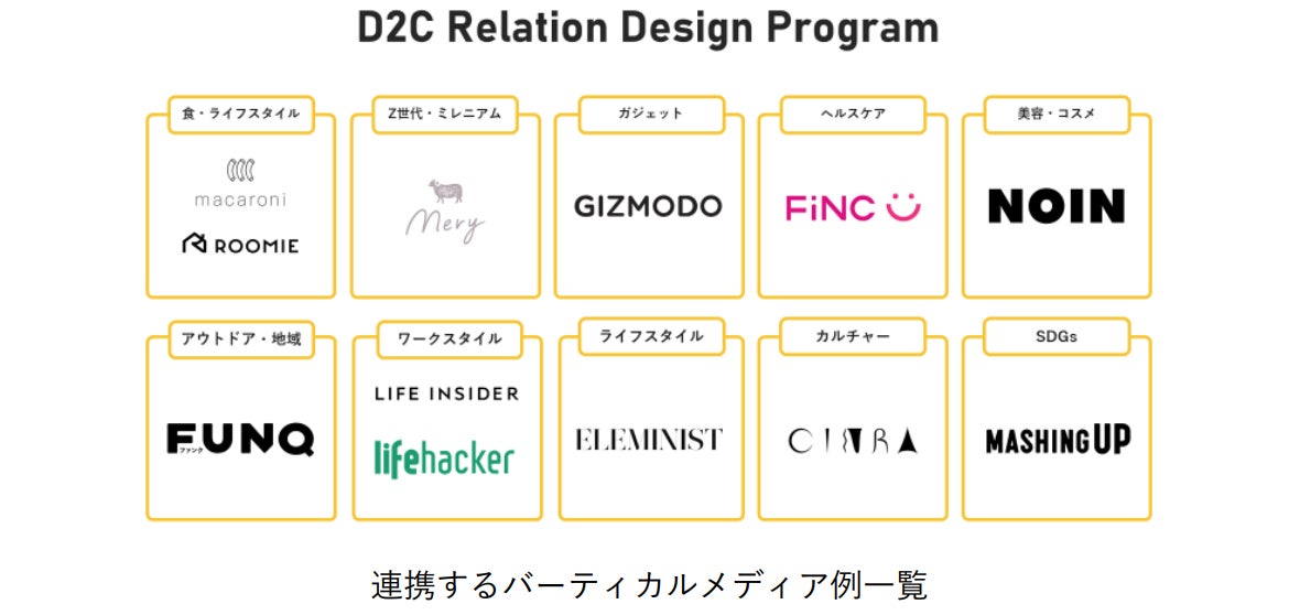 「D2C Relation Design Program」は分野特化型ナレッジと強固なコミュニティ、生活者データなど、バーティカルメディアが持つ可能性を最大限に活かしながら、クライアントの課題解決を目指すソリューションプログラムです。