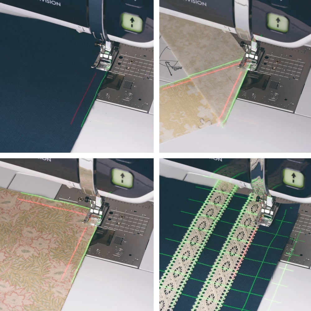業界最大【※1】12.7×20.3cmのエリアに投影できるプロジェクター機能を搭載。縫製前に刺しゅうデザインを生地の上に投影することでシミュレーションができるほか、縫製時にガイドラインを表示させることで、縫い合わせ・ファスナー・ピンタックなどのステッチも正確に仕上げられる。