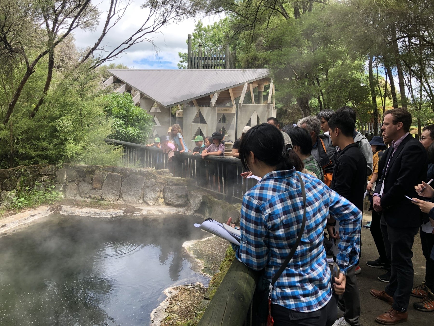 その他、地熱資源を持続的に管理するための取組の紹介に加え、透明な地熱水が連続的に溢れる地熱泉や地熱水と地下水が混合し乳白色となる地熱泉といった地熱兆候が見学できるロトルア市クイラウパークを訪問し、有意義な4日間となりました。
