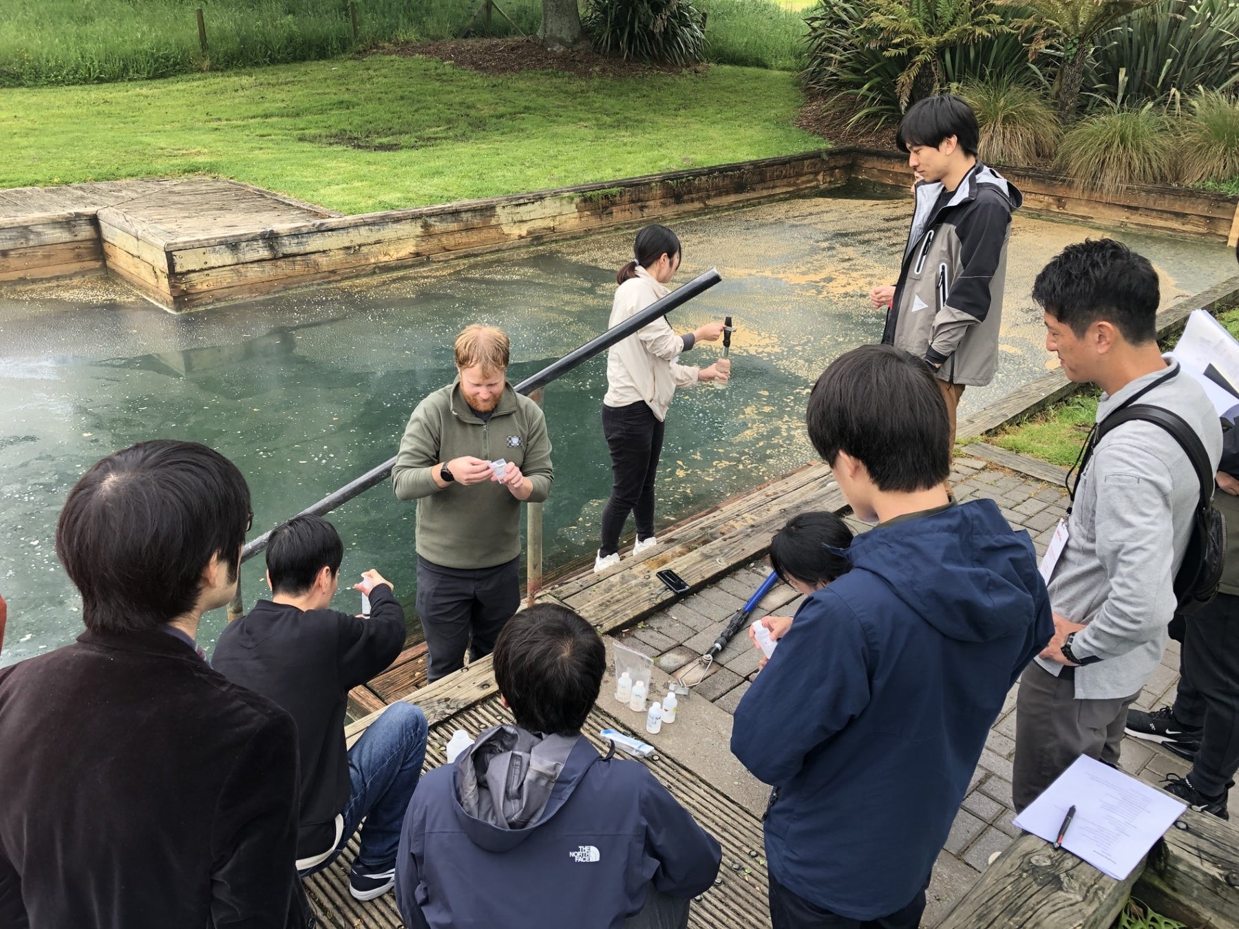 地熱開発における一線級の専門家を有するGNS Scienceの講師から地化学の基礎をはじめ、サンプリング手法、データ解析、スケール対策、ラボ試験、貯留層モデル等に関する講義及び実習を実施し、発電所見学としてニュージーランド最古のワイラケイ、新規発電所を建設中であるタウハラ、また、地熱多段階利用の例としてモカイを訪問するとともに、カーボンニュートラルに向けた世界的な動向を踏まえた、地熱発電を用いた水素製造プラントを見学しました。