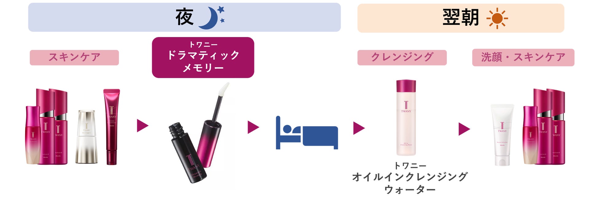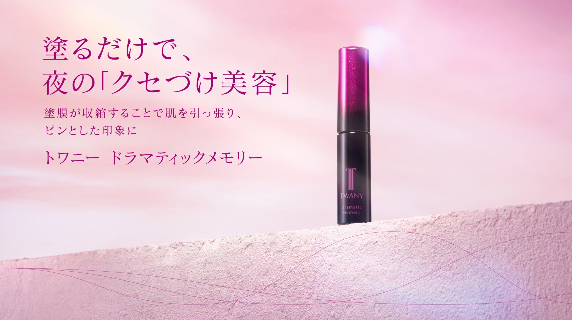 塗膜収縮によって肌を引っ張り、気になるシワやたるみを目立ちにくくする「トワニー ドラマティックメモリー」より、塗るだけで、夜の『クセづけ美容』の新提案
