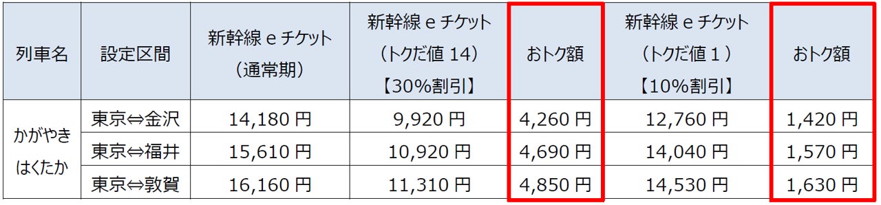 ※発売額は「新幹線eチケット」(通常期)の運賃・料金より割引した金額となります。