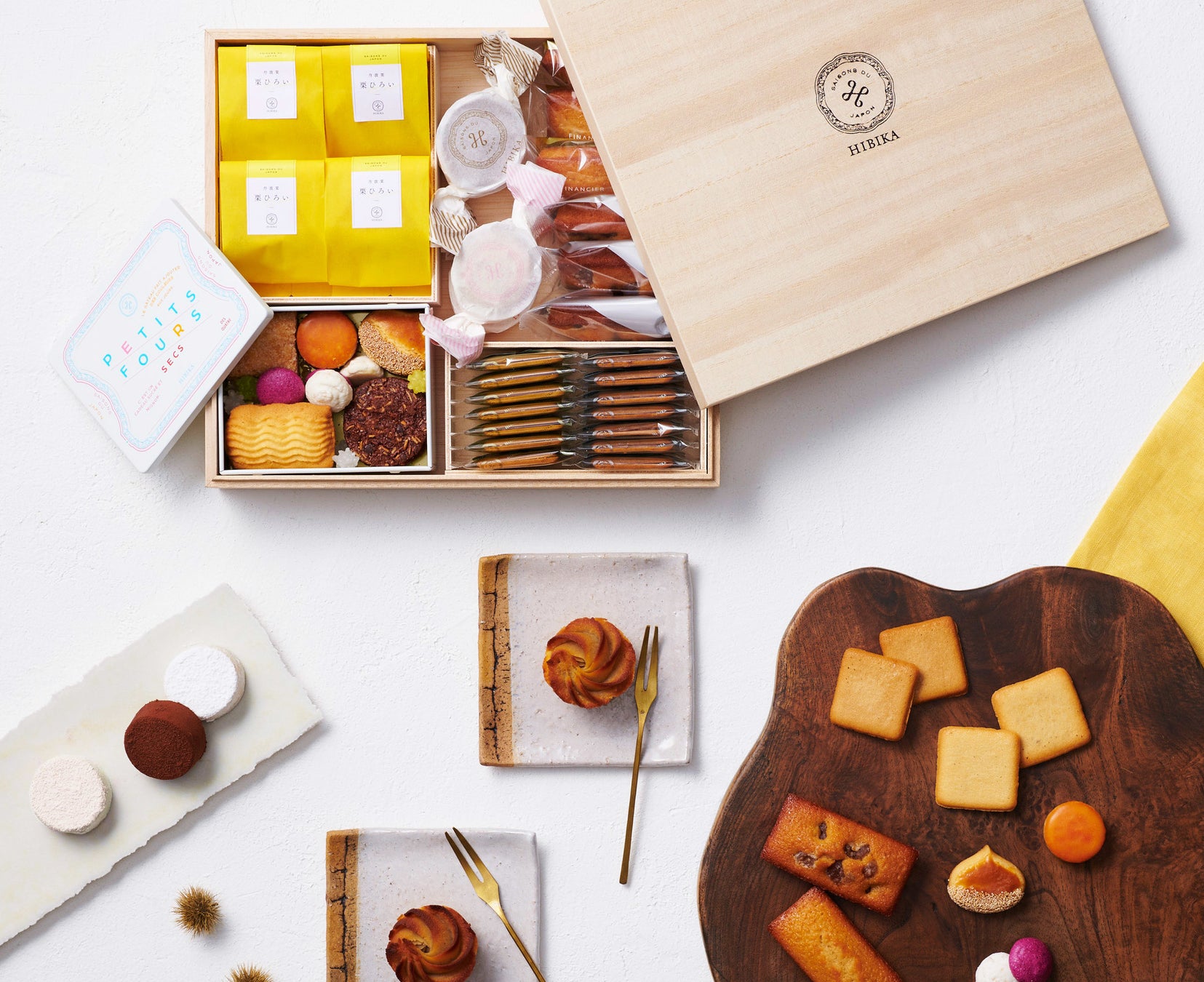 四季菓子の店 HIBIKA(ひびか)は 、 オンラインショップ限定で桐箱入りの秋の焼き菓子詰め合わせを販売いたします。