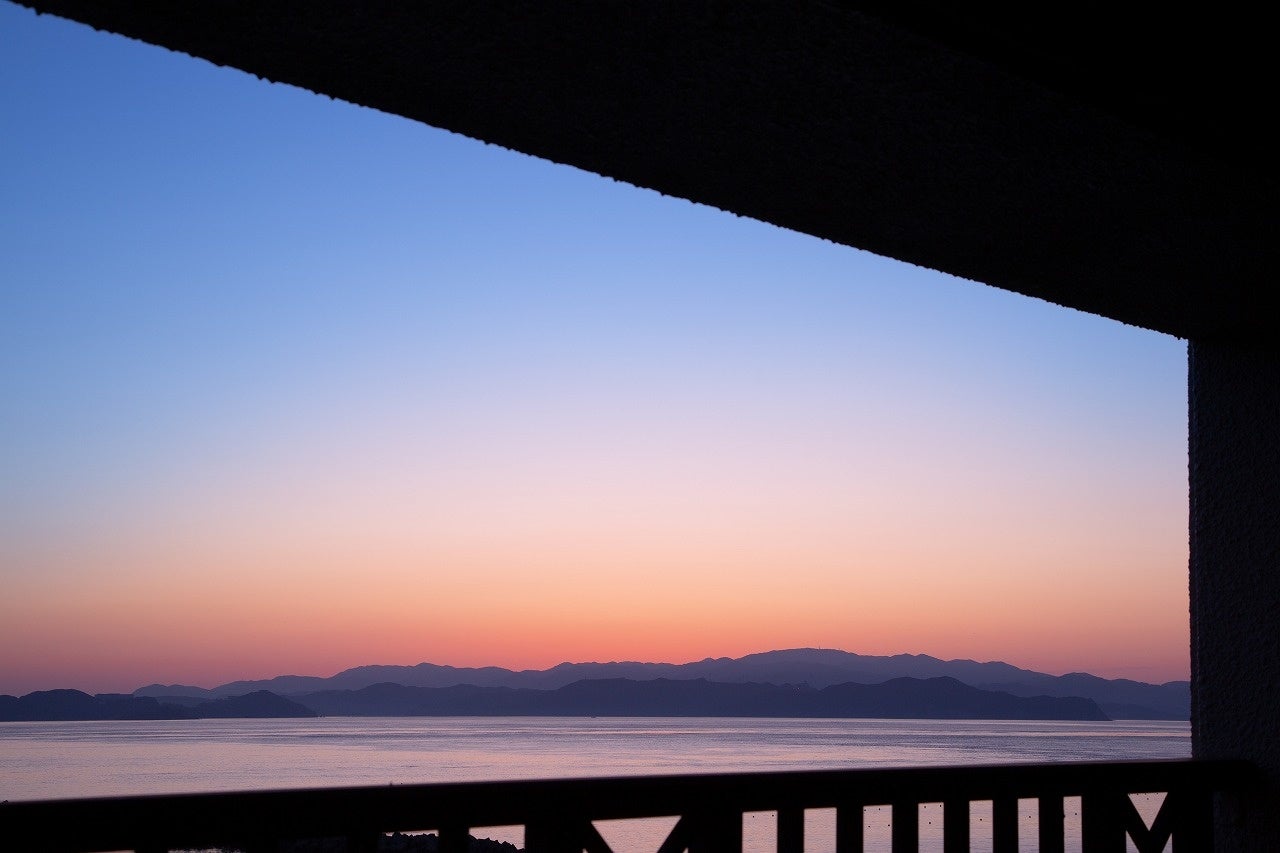 *海に昇る朝日と月の道「ムーンロード」を望む客室