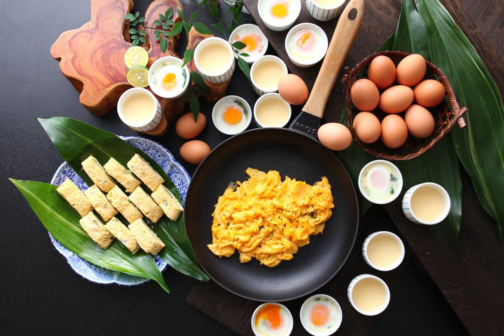オープンキッチンで焼き上げるあつあつの干物、魚介の風味漂う味噌汁などをご堪能いただけます。「たまごのソムリエ」小林ゴールドエッグをふっくら焼き上げた出し巻きなど、こだわりの玉子料理も並びます。