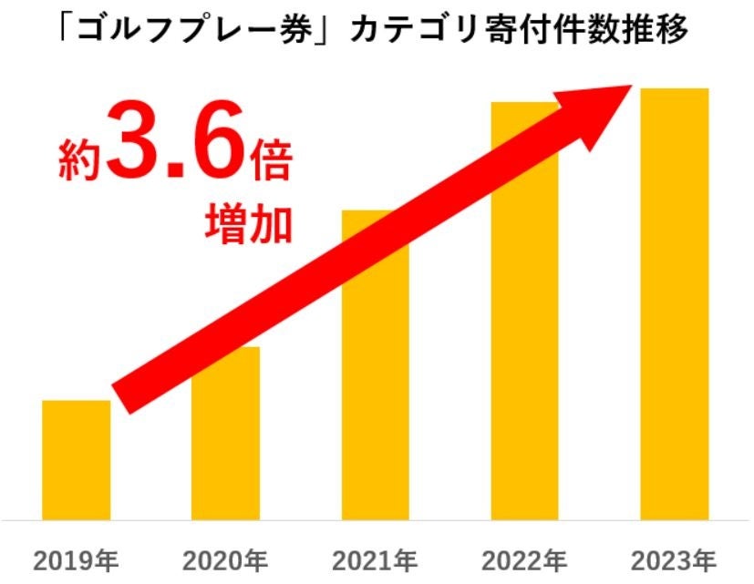 モノからコトへ消費需要がシフトしているといわれる中、ふるさと納税でも地域で体験するお礼品への寄付件数が増加しています。「さとふる」における「ゴルフプレー券」カテゴリの寄付件数は、コロナ禍前の2019年から2023年にかけて約3.6倍に伸張しました。また、さとふるが自治体を対象に実施したアンケート(※4)では、7割以上の自治体が「体験型お礼品を増やしていきたい」と回答しており、理由として「訪問が伴うことで地域の魅力を直接感じてもらえる」「人流増加による地域経済発展を期待できる」などの声が寄せられました。