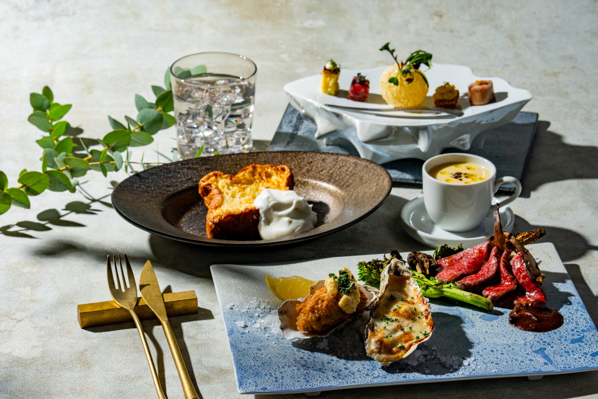 ランチタイムは、うめきた公園ビューを楽しむ優雅なメインが選べるランチコース&オイスターランチ