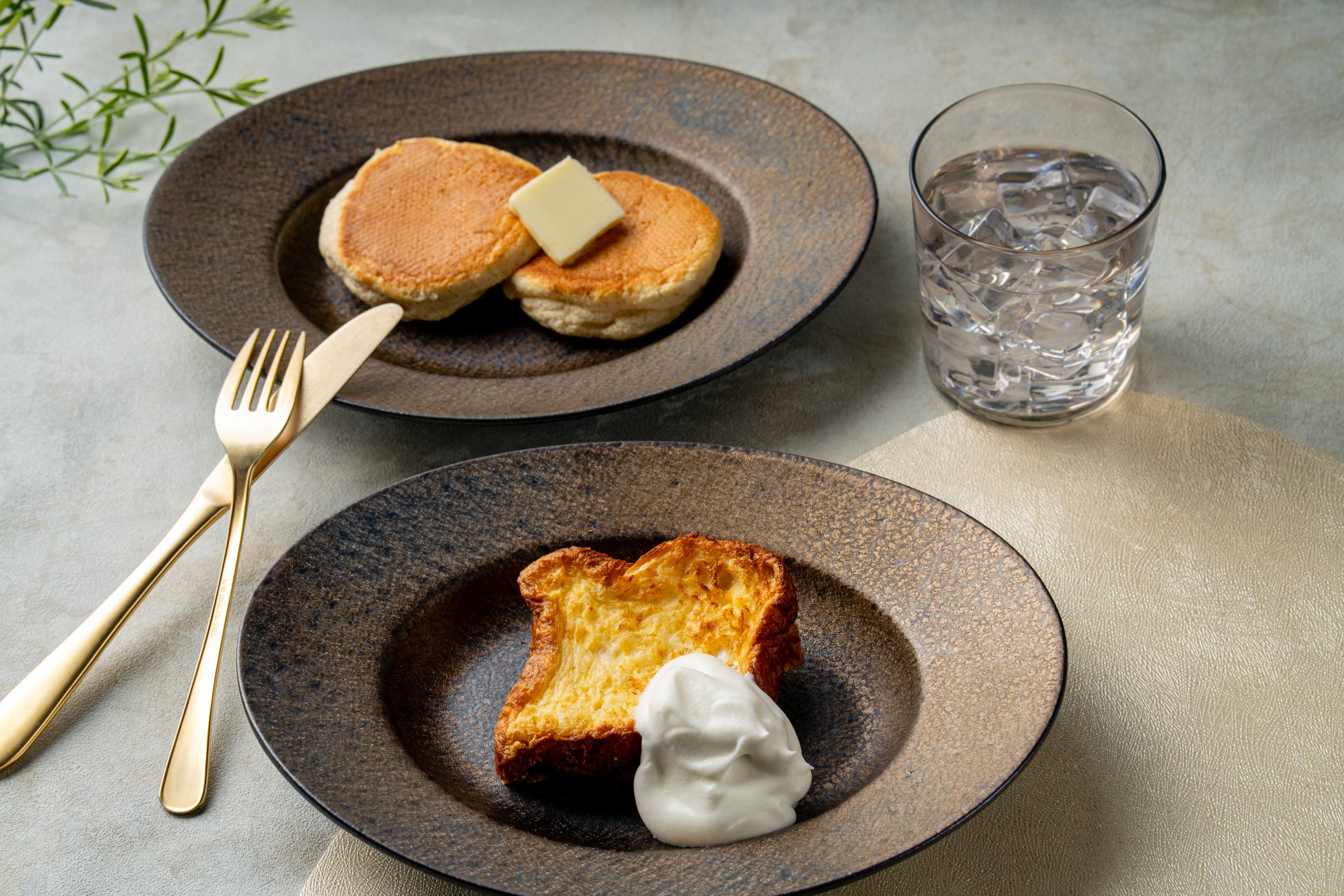 控えめなパンケーキ”と“しっとりフレンチトースト”をいずれかお選びいただけます。